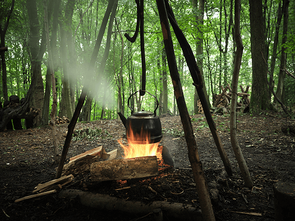 A monsoon-like rainstorm hammers down on the canopy of trees while I sit, under the protection of a tarpaulin, transfixed by the dancing flames gently licking the kettle preparing my morning coffee. It’s 7am and before I set foot on my next ramble along the Chiltern Way, I am the guest of bushcraft expert David Willis in woodland near Chorleywood, Hertfordshire.
