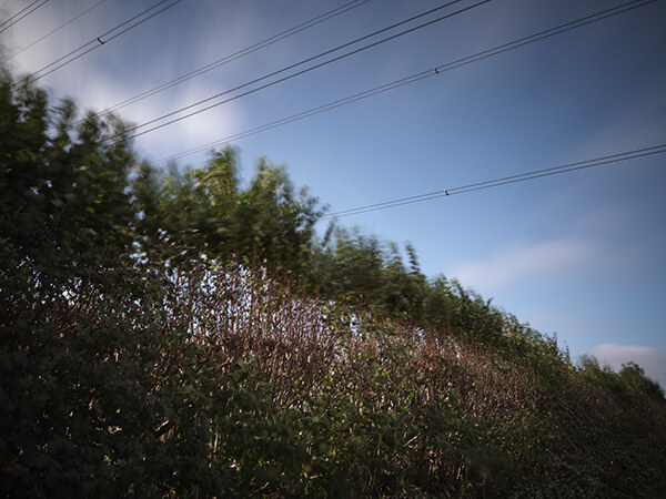 There was an overriding theme of change developing on this walk. I soon came across a long pile of hedge trimmings. I stopped and paid specific attention to the hedge, the recently ploughed – now dirt – field and an intermittent buzzing sound of a ‘march’ of electricity pylons. I’ve already fictionalised ‘sautumn’, why not also create a collective noun too?