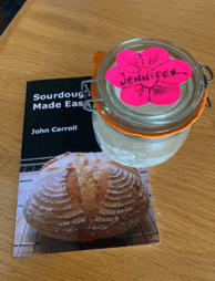 The first step was to create our very own sourdough starter—it turns out that all you need is flour, water, love and patience. Every morning, we took turns to feed Jennifer (the book that we were using suggested you name your Sour Dough Starter) with more flour and water.