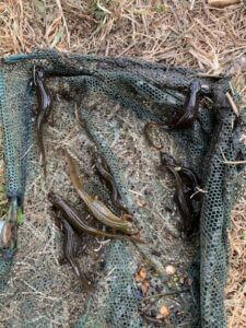 For the last couple of years, we haven’t had the time to clear the brambles and nettles, so they had really taken over. However, with lots of free-time and beautiful weather, my brother and grandad have been working tirelessly to clear the land so we could get to the pond. My job has been to clear the algae from the surface of the water. It’s not a pleasant job – I always come back smelling a lot worse than when I left. This year, for the first time ever, I slipped and found myself ankle-deep in pond sludge – utterly disgusting! But the pond is now clear.