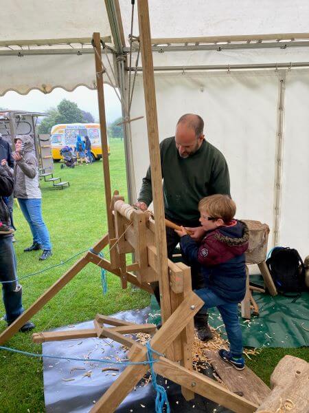 A woodturner and craftsman, Alistair, came with his pole lathe – and the mesmerising action of this captivated onlookers. Wycombe and Amersham Museum were also present – Amersham arriving in full force in their mobile museum ‘Anthony’ – a vintage vehicle whose loud, ‘hooter’ proved very popular with younger attendees, and Wycombe Museum offering families the chance to build their own lolly-stick chairs and decorate them.