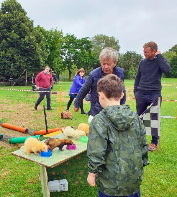 Festival ferrets before their race. Graham from Gamegoer got lots of kids involved in ferret racing, shouting across the green ‘will Sneaky Pete be the winner this time?!’ Families watched in amazement (and amusement) as the ferrets raced to a bowl of milk over several obstacles. Only the ferret who finished its milk would be victorious, and more than a few children left the show asking their parents for a ferret as a pet!