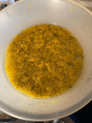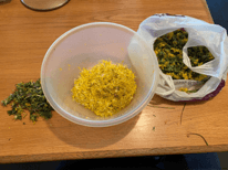 We finally ended up with 2 highly packed cups of petals which we covered in boiling water and then left to ‘stew’ (in the fridge once it had cooled) for 24 hours. We then strained the murky green liquid through a muslin and boiled this juice with 2 tbs of lemon juice, 4 cups of water, and 4 cups of jam sugar (which included pectin). We left it to simmer for around 20 minutes and kept testing it until the mixture solidified when poured it onto a cold surface.