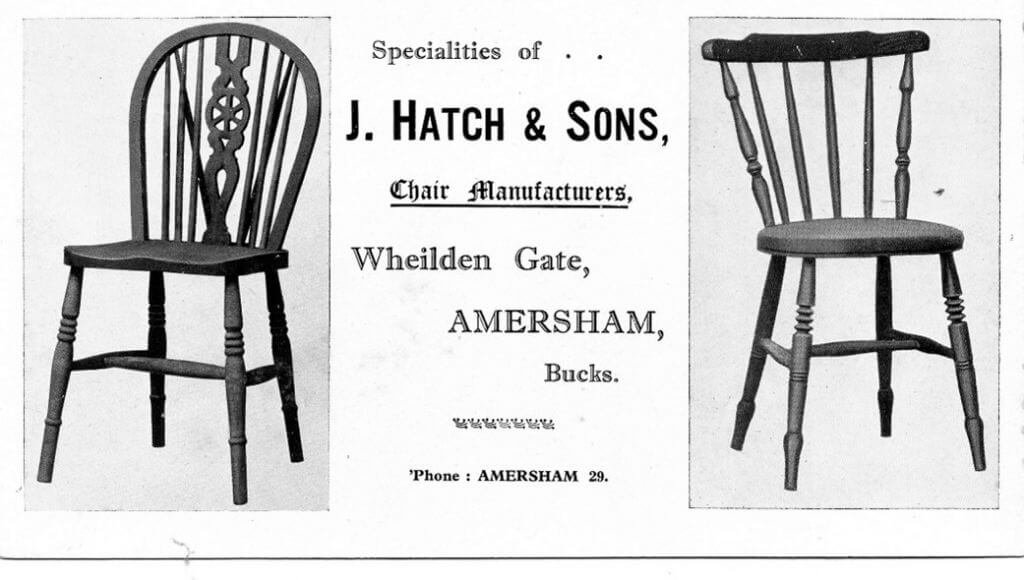 When I was a child, my grandfather Joe Hatch had in his house in Amersham a vast collection of blotting papers on the back of each was an advertisement for the chairmaking business. I was allowed to scribble all over them. I learned later from my mother that this advertising material was rarely used because of the misspelling of ‘Whielden’. A few un-scribbled-on blotting papers still remain with me.