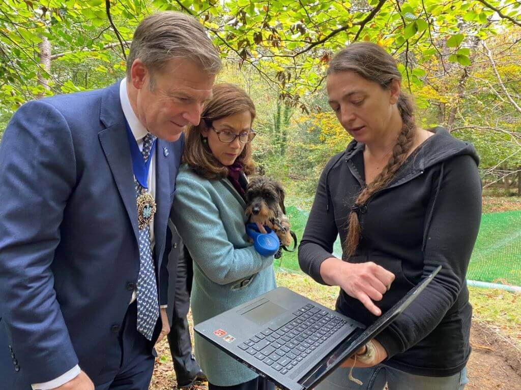Not all of the archaeological discovery happens at the point of a mouse cursor these days, though – the point of a trowel still comes into play (though not as often as I’d like!). This past month, at one of the project hillfort sites, an excavation took place. Hosted by project partner Corporation of London, we’d dug at Burnham Beeches before, in 2019 successfully fielding over 80 volunteers in a community trench across what turned out to be a very likely medieval enclosure ditch and bank, probably for managing deer herds. However, due to COVID considerations, a small trench with a lot of people in it wasn’t really a sensible thing to do. And yet, we really wanted to secure some further information about the hillfort. Had the 2019 earthwork been firmly prehistoric in date, it might have helped us with our hillfort thinking, but as it didn’t seem to be, it was time to think again.