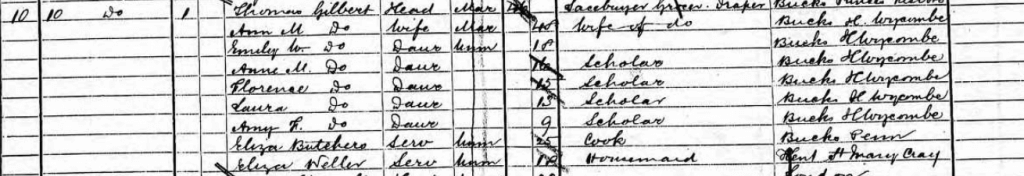 Thomas and Anne Gilbert had five daughters, two of whom carried on the fancy bead and trimmings business in Wycombe, and one married a wealthy London lace manufacturer.