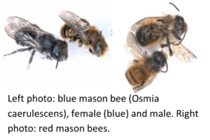 The bee nearest the exit is the first to emerge and it is the males who are out first as well, as they wait around the entrances for females to come out.