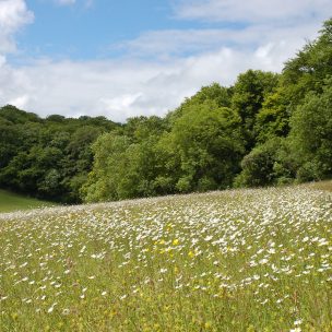 Shaped by traditional farming methods, such as hay-cutting and grazing, these flower-rich fields near lowland rivers have moist, deep soils that support plants like cuckooflower, oxeye daisy, meadow buttercup and great burnet. In turn, invertebrates are plentiful and wading birds flock to the fields to feed.