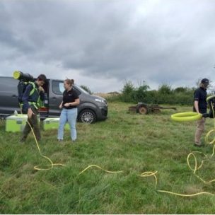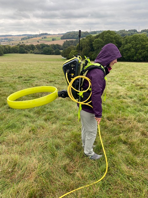 In 2023, Chalk, Cherries and Chairs undertook a Geophysical Survey of an area where there is a ‘gap’ in the Ditch to determine its nature. 34 young volunteers from the two Bucks YAC groups and our New Shoots group (all aged between 8 and 16) were accompanied by 8 adult volunteers to survey the gap using specialist equipment.