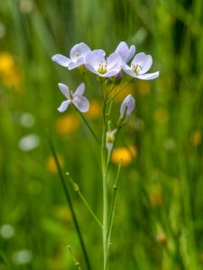 The cuckooflower is a delicate plant with pale pink or lilac flowers that are easily spotted in springtime. Also known as lady’s-smock, it is a perennial of damp places like wet meadows, ditches, pond margins and riverbanks, as well as roadside verges. Its flowers sit atop slender, upright stems and bloom from April – just when the first cuckoos arrive. A sure sign of spring!