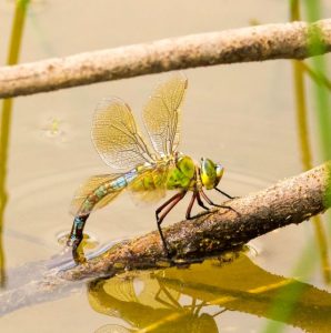 Dragonflies and damselflies happily flit about our wetlands in the summer months. There are lots of different species to look for, but the emperor dragonfly is certainly one of the most impressive. With a length of nearly 8 cm, it is a very large dragonfly. Male emperors are blue with a green thorax and black stripe down the body, whereas females are greener in colour. From June to August, emperor dragonflies can be seen around ponds, lakes, canals and ditches, chasing their insect prey.