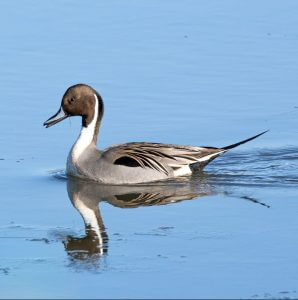 In winter, the wetlands of the Chilterns play host to a huge variety of ducks, many flying in from colder climes, bolstering our resident populations. Ducks are generally split into two kinds: dabbling ducks feed at the surface, dipping their bills or heads in the water; while diving ducks dive under the surface and swim for their food. One of our winter regulars – the pintail – is a dabbling duck that eats plants and insects. The males are distinctive in their breeding plumage at this time of year, with chestnut heads, white necks, grey bodies and characteristically long, pointed tail feathers.